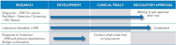 Selbstverständlich ist das Verfahren von BioMark Diagnostics patentrechtlich geschützt und kann somit nicht von Wettbewerbern kopiert werden. Der Einsatz der Technologie ist nicht nur sehr genau, zuverlässig und kostengünstig, sondern auch komplett nichtinvasiv, sprich für den Patienten angenehm. Unerwartete Nebenwirkungen sind ebenfalls nicht zu befürchten. Die derzeit nach FDA-Standards laufende Phase-3-Studie wird mit 340 Patienten in Kanada, China und Bangladesh durchgeführt und läuft plangemäß auf Hochtouren in den Indikationen Brust-, Prostata-, Lungen- und Magen-Darm-Krebs. Dank der BioMark-Technologie soll sich außerdem ohne viel Aufwand der Behandlungserfolg der Therapien feststellen lassen.
