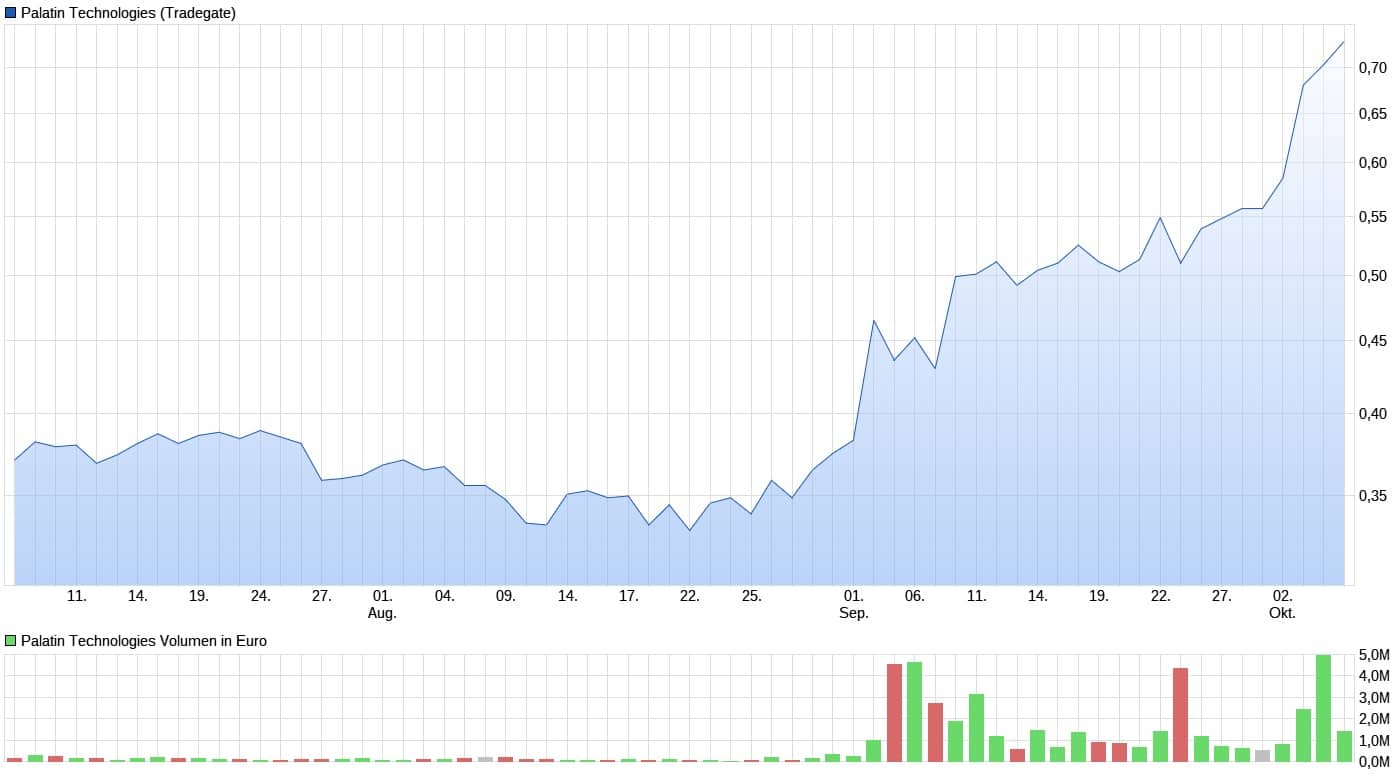 Seit Anfang September ist die Nachfrage nach Palatin-Aktien auch in Deutschland regelrecht explodiert. Quelle: ariva.de