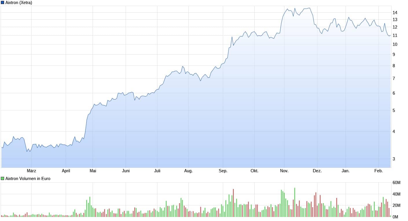 Ob wir letztendlich wirklich ein Jahr mit schwarzer Null sehen werden, wissen Anleger am 27. Februar. Dann gibt Aixtron die Ergebnisse für das abgelaufene Geschäftsjahr bekannt.