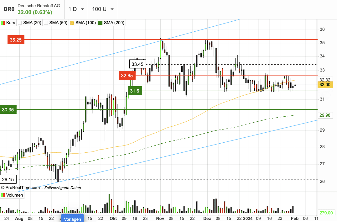 Die ist wenige Tage später eingetroffen, seitdem befindet sich das Bergbau-Papier im Konsolidierungsmodus. Die Kaufzone sehen wir weiterhin erst unter 30 € erreicht. Dann beschert auch die Dividende des Unternehmens eine Rendite von deutlich über 4,5%.