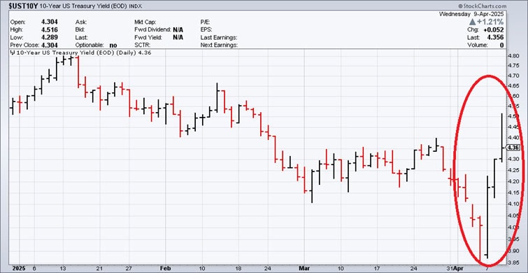 Gestern gab es einen weiteren sehr massiven Aspekt, der Trump zum Umdenken bewogen hat und ihn eine 90-Tage-Frist für Verhandlungen über Handelsdeals setzen ließ. Ein Aspekt, der nicht nur sogar einen Donald Trump das Fürchten lehrt, sondern der bei Marktbeobachtern nicht grundlos das Gefühl hinterlassen hat, dass das globale Finanzsystem in Gefahr war.