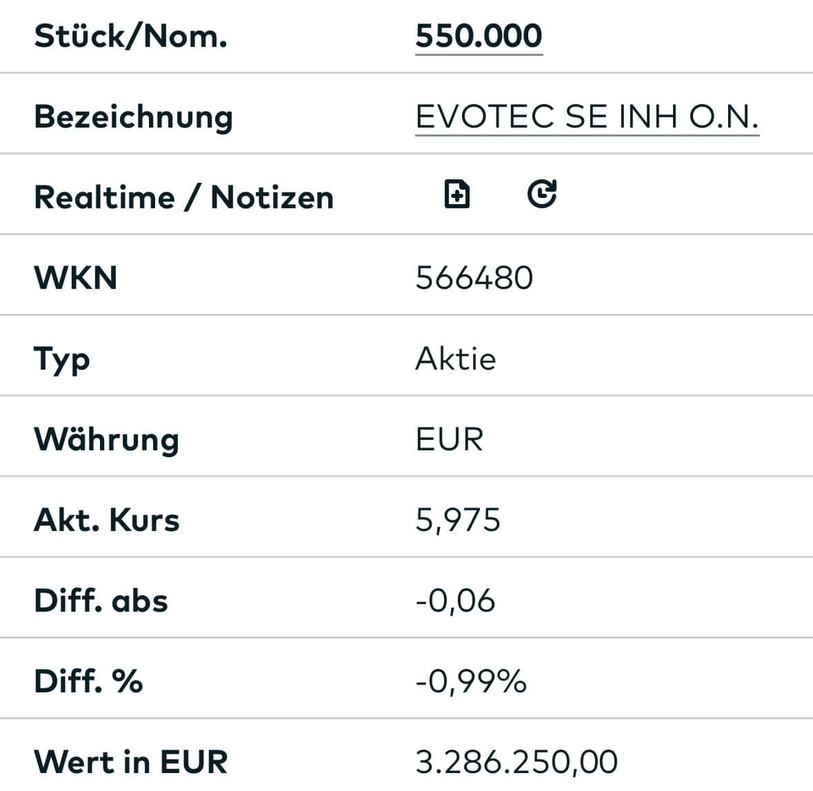 550.000 Evotec-Aktien sind vor der großen Rallye im Depot eines unserer Star-Trader gelandet. Quelle: privat