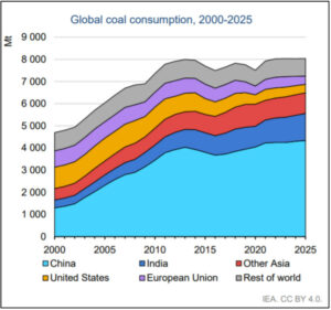 Globaler Kohleverbrauch der Jahre 2000 bis 2025: