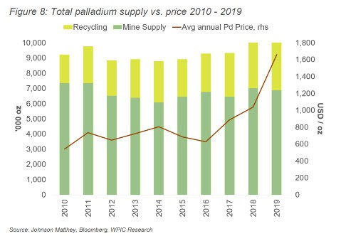 Und auch während des jüngsten Preiseinbruchs haben die primären Nickel- und Silberbergwerke ihre Produktion nicht verringert. In der Tat ist das Palladiumangebot mit Ausnahme einiger weniger primärer PGM-Produzenten relativ unelastisch.