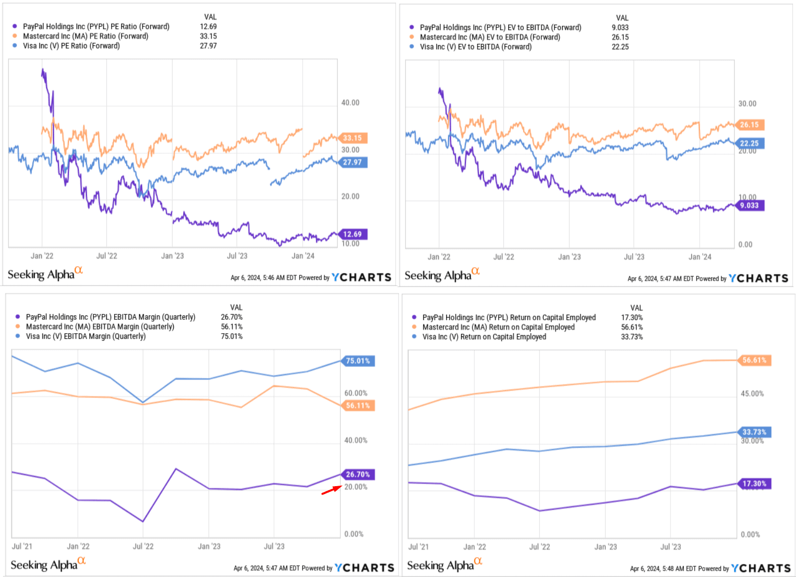 Verschiedene Multiplikatoren von PayPal, Visa und Mastercard im Vergleich. Quelle: SeekingAlpha