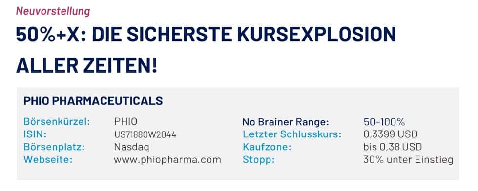 Nicht nur unsere Aktie des Jahres markierte gestern ein neues Jahreshoch, auch unser Volltreffertipp Phio Pharmaceuticals (WKN: A2N9QM) klettert immer weiter nach oben - exakt wie vom No Brainer Club erwartet.