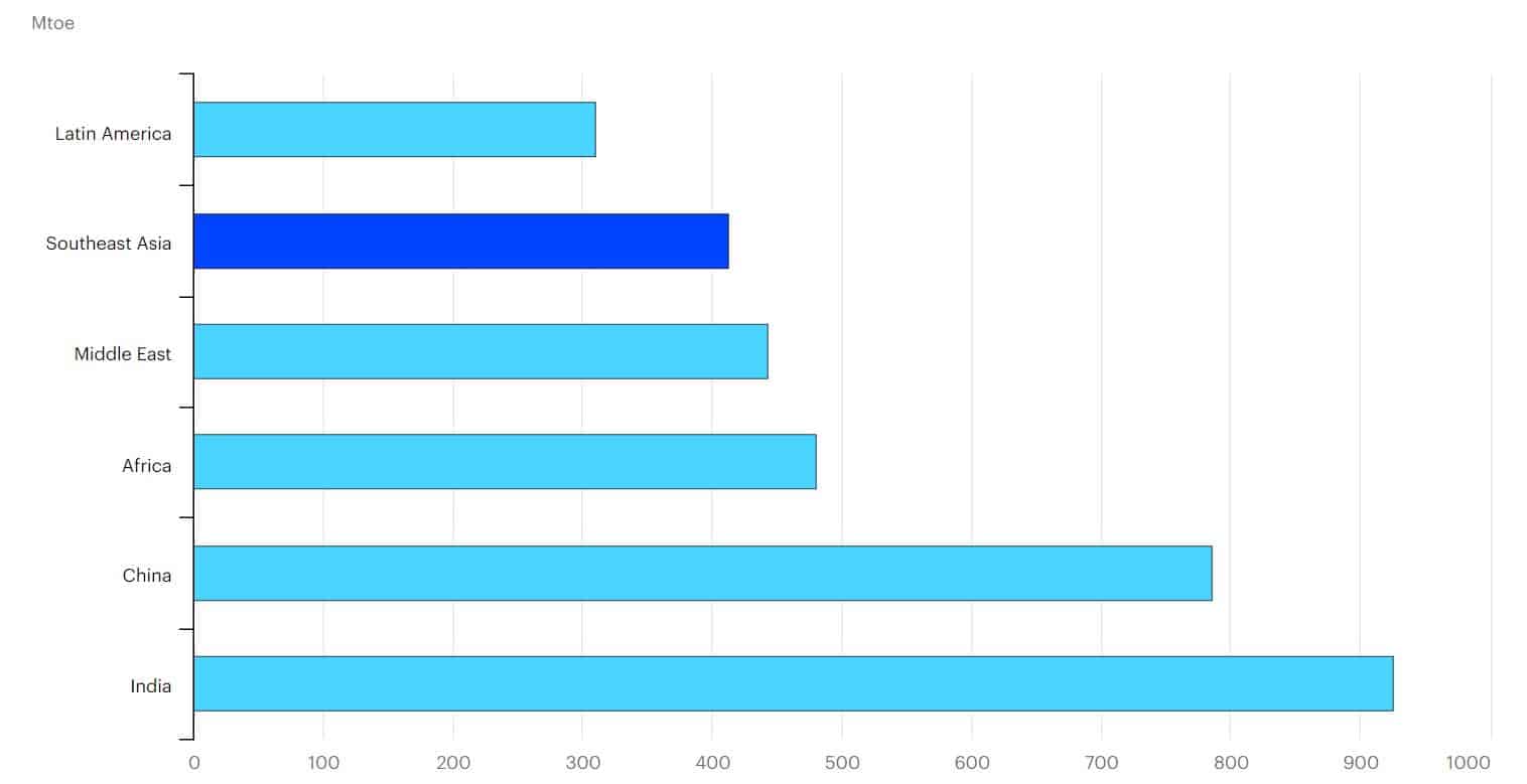 Südostasien ist laut IEA erst die fünftstärkste Wachstumsregion weltweit für den Energieverbrauch bis 2040 und noch stärkeres Wachstum wird vom Mittleren Osten, Afrika sowie den führenden Wachstumsnationen China und Indien erwartet.