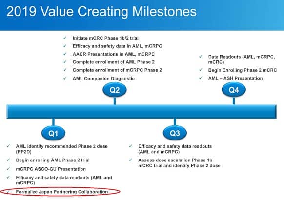 Auf die bevorstehende Neubewertung Trovagenes im aktuell laufenden 1. Quartal hatten wir zuletzt im Dezember verwiesen. Wie auch die aktuelle Unternehmenspräsentation bestätigt, will Trovagene in den nächsten Wochen einen ersten Partnerdeal für Onvansertib in Japan, dem zweitgrößten Pharmamarkt der Welt, eintüten.