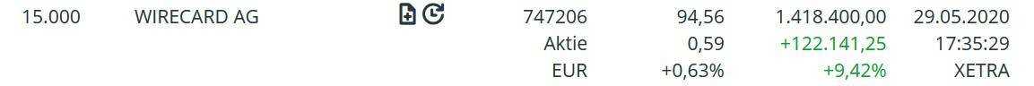 Auch die von uns letzten Donnerstag für den neuen Monat Juni als Zwischenschritt angekündigten "Triple Digits" geraten damit bereits in Reichweite. Nach unserem letzten Update gab es zwei weitere positive Meldungen beim DAX-Konzern: Die Veröffentlichung des Geschäftsberichts 2019 am 18. Juni wurde per Vorabbekanntmachung nochmals bestätigt. Und: Wirecard-Macher Markus Braun setzte ein klares Signal und kaufte Aktien im Wert von 2,5 Millionen Euro hinzu.