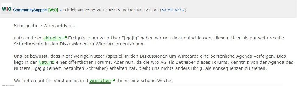 Bezahlte Forenschreiber versuchen offensichtlich, die Wirecard-Aktie zu manipulieren. Quelle: wallstreet-online.de