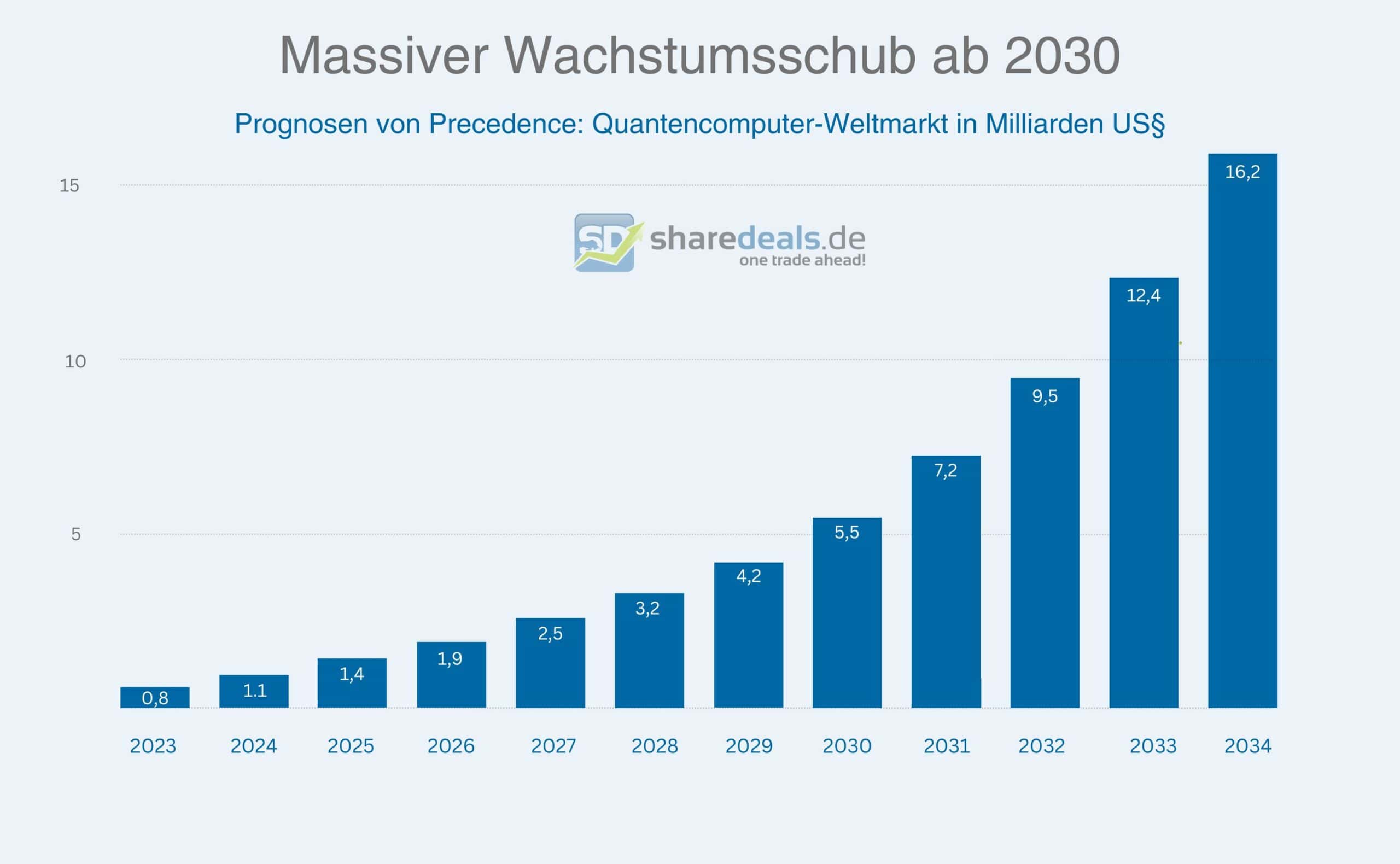 Ende des Jahrzehnts wird der Markt für Quantum Computing so richtig Fahrt aufnehmen | Daten: Presedence.com | Grafik: Eigene Darstellung