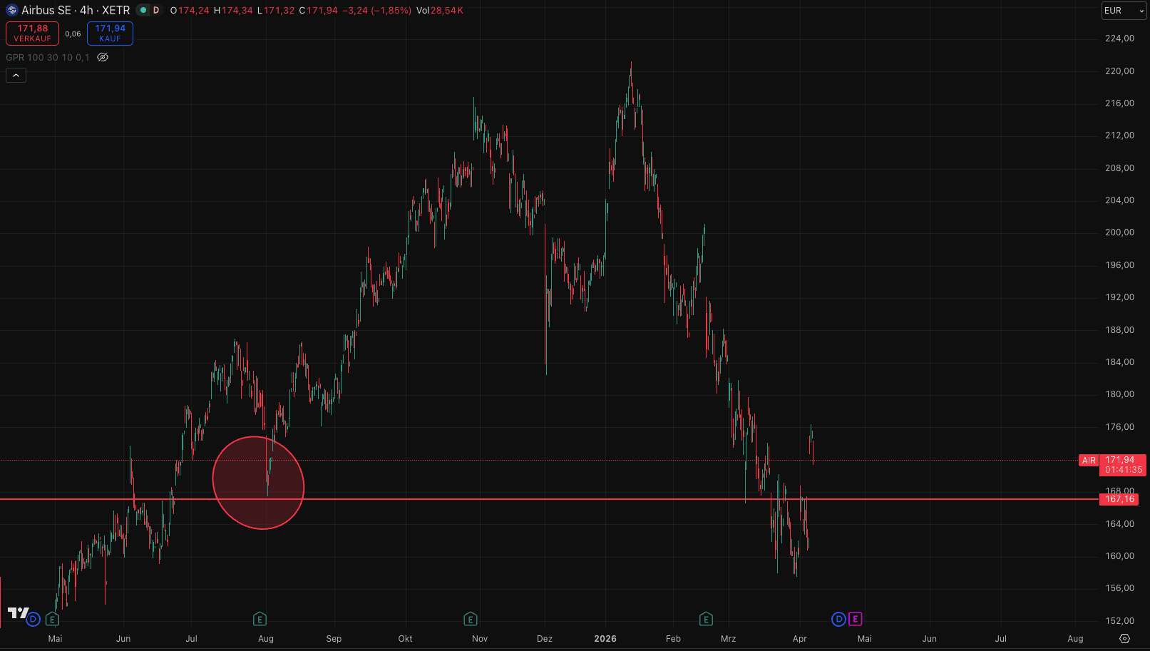 Meine persönliche Meinung ist, dass Airbus aktuell eine interessante Situation bietet. Die Kombination aus starker fundamentaler Basis und stabiler Unterstützung spricht für weiteres Potenzial. Gleichzeitig bleibt das Umfeld entscheidend. Sollte die Unsicherheit an den Märkten wieder zunehmen, könnte auch die Unterstützung erneut unter Druck geraten.