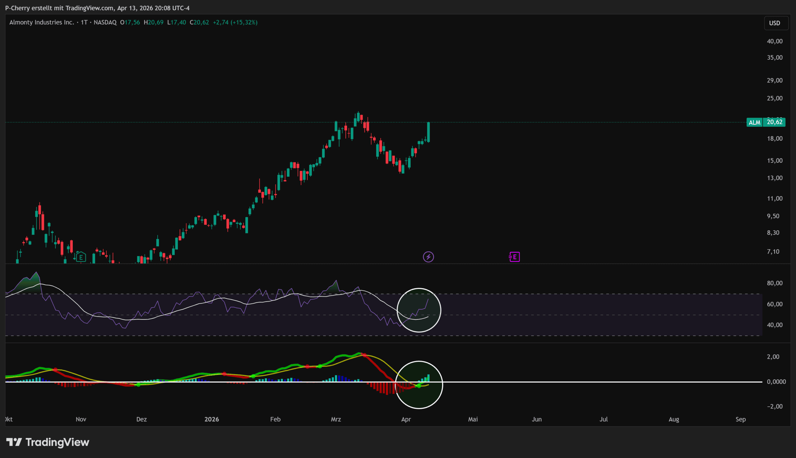 Die Almonty-Aktie zeigt nach dem starken Rücksetzer eine dynamische Erholung mit +53% vom Tief und gewinnt wieder deutlich an Momentum. RSI und MACD liefern klare bullische Signale und bestätigen die kurzfristige Stärke im Chart.