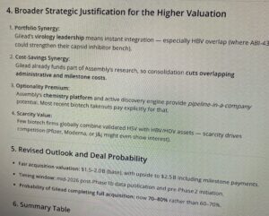 Gleichzeitig wartet Gileads vor gut einem Jahr fertiggestellte „Virology Center of Excellence“ weiterhin auf ausreichend Personal. Das benachbarte Assembly Bio hätte dieses in hochkarätiger Form zweifellos im Angebot – mitsamt einer „Lead Drug Discovery Engine“, wie sie sich Gilead nur wünschen kann. Entsprechende Signale werden von Gileads Management regelmäßig auf Investorenveranstaltungen gesendet – ohne das Kind beim Namen zu nennen.
