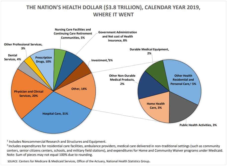 Wie die staatliche Behörde CMS angibt, gab man 2019 fast so viel für die Verwaltung wie für Medikamente aus und mit etwa 10% der Ausgaben liegt der relative Anteil sogar unter dem Vergleichswert in Deutschland: