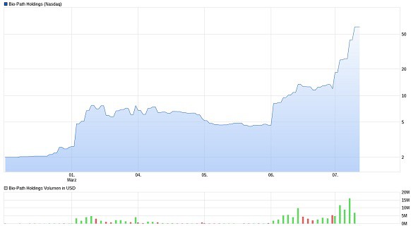 Die Bio-Path-Aktie explodiert unter gigantischen Umsätzen. Quelle: ariva.de