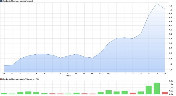 Catabasis, das bereits Anfang Mai wieder Zahlen vorlegen und ausführlich über die Geschäftsentwicklung berichten wird, bleibt mit einer Marktkapitalisierung von derzeit circa 80 Millionen Dollar (auf Basis von 11,5 Millionen ausstehender Aktie per 7. März und einem aktuellen Kurs von etwa 7 USD) und einem Kassenbestand von geschätzt gut 50 Millionen Dollar zum Ende des laufenden Quatals eine Jahrhundert-Chance für Anleger.