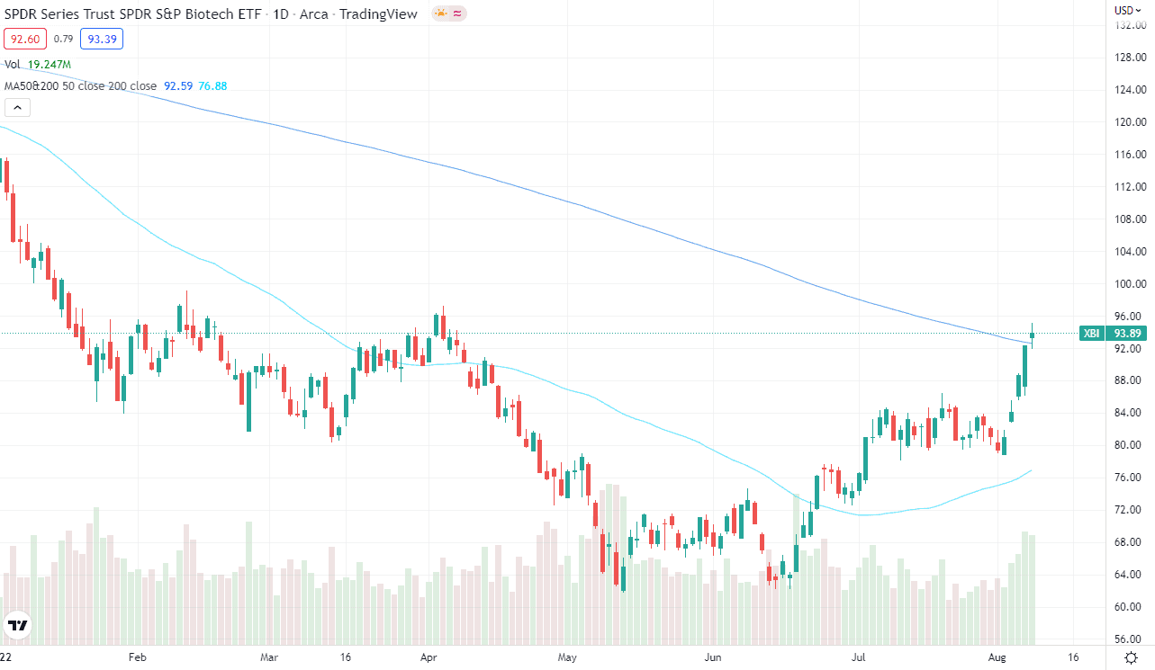 Ein Rücksetzer wäre hier nicht nur gesund, sondern ist nach der deutlichen Rallye der letzten Wochen zu erwarten. Das mag negativ klingen, doch hier solltest Du einen größeren Zeithorizont mitbringen. Der letzte ganz große Bärenmarkt im Biotech-Sektor fand 2015/16 statt. Es folgte eine satte zweijährige Rallye, in dessen Verlauf der branchenübergreifende ETF XBI rund +130% Performance erzielte. Der aktuelle Bärenmarkt ist jedoch länger und tiefer. Es gibt also allen Grund, auch von einer stärkeren Gegenbewegung auszugehen.