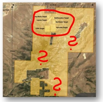 - Ähnlichkeiten mit dem vorherigen Ansatz bei Northern Empire: Bei dem Projekt damals wurden 3-4 wesentliche Erzzonen mit Oxidgold (leicht abbaubar) entwickelt, die sich zusammen zu möglichen 3-5 Millionen Goldunzen summieren sollten. Jetzt weist das zu 100% Eclipse gehörende Hercules Projekt über 85 km² Landfläche wieder 6 bekannte Kernzonen - bestätigt durch erste historische Bohrungen - und seit wenigen Wochen mindestens eine weitere neue Explorationszone auf. Sprich, das Skalierungspotenzial für ein Multimillionenunzen-Goldvorkommen scheint vorhanden zu sein!