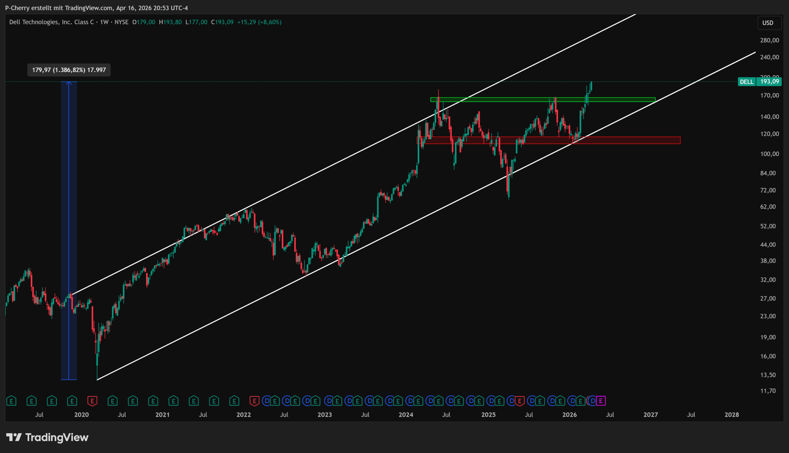Dell, Wochenchart, Quelle: Tradingview.com
