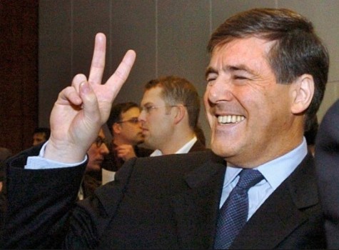 Berühmtes Foto von Ex-Deutsche Bank-Chef Josef Ackermann vom damaligen Prozess um die Übernahme von Mannesmann durch Vodafone