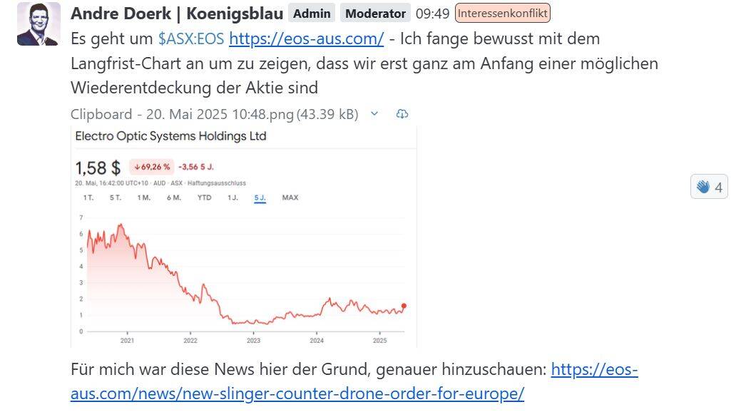 Electro Optic Systems-Aktie +72% seit Mai: SDP-Community jubelt