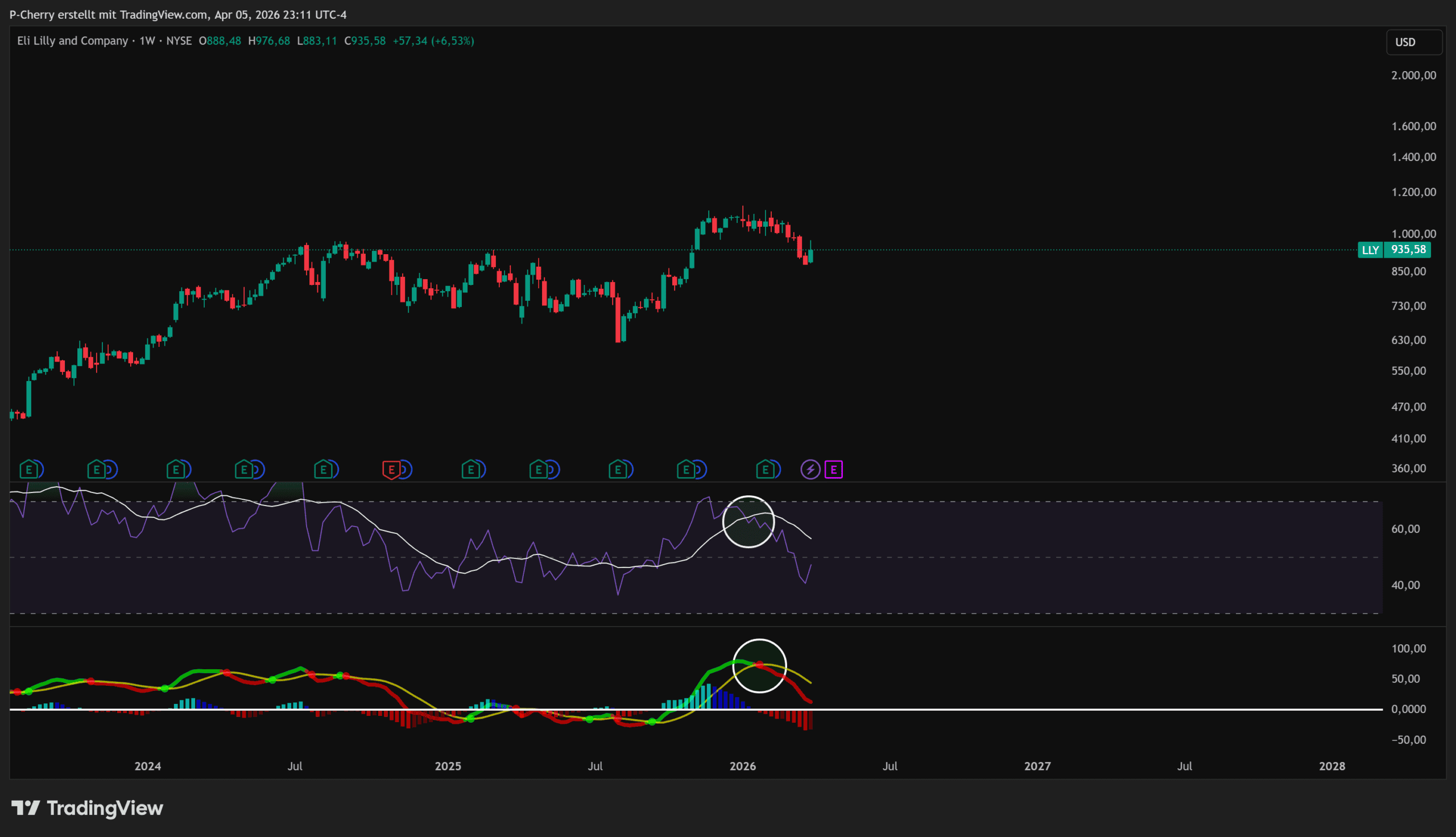 Eli Lilly, Wochenchart, Quelle: Tradingview.com