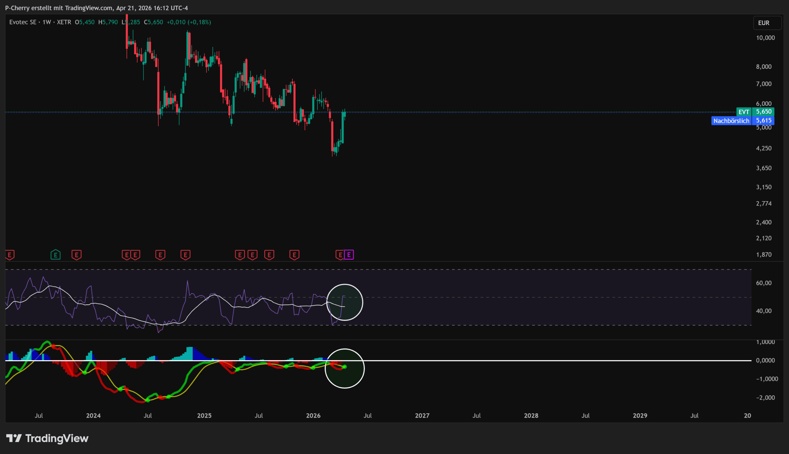 Die Indikatoren senden aktuell positive Signale. RSI und MACD haben im Wochenchart bullische Crossovers gebildet, während sich das Momentum langsam verbessert. Kurzfristig wirkt die Evotec-Aktie damit deutlich stabilisiert und technisch aufgehellt.
