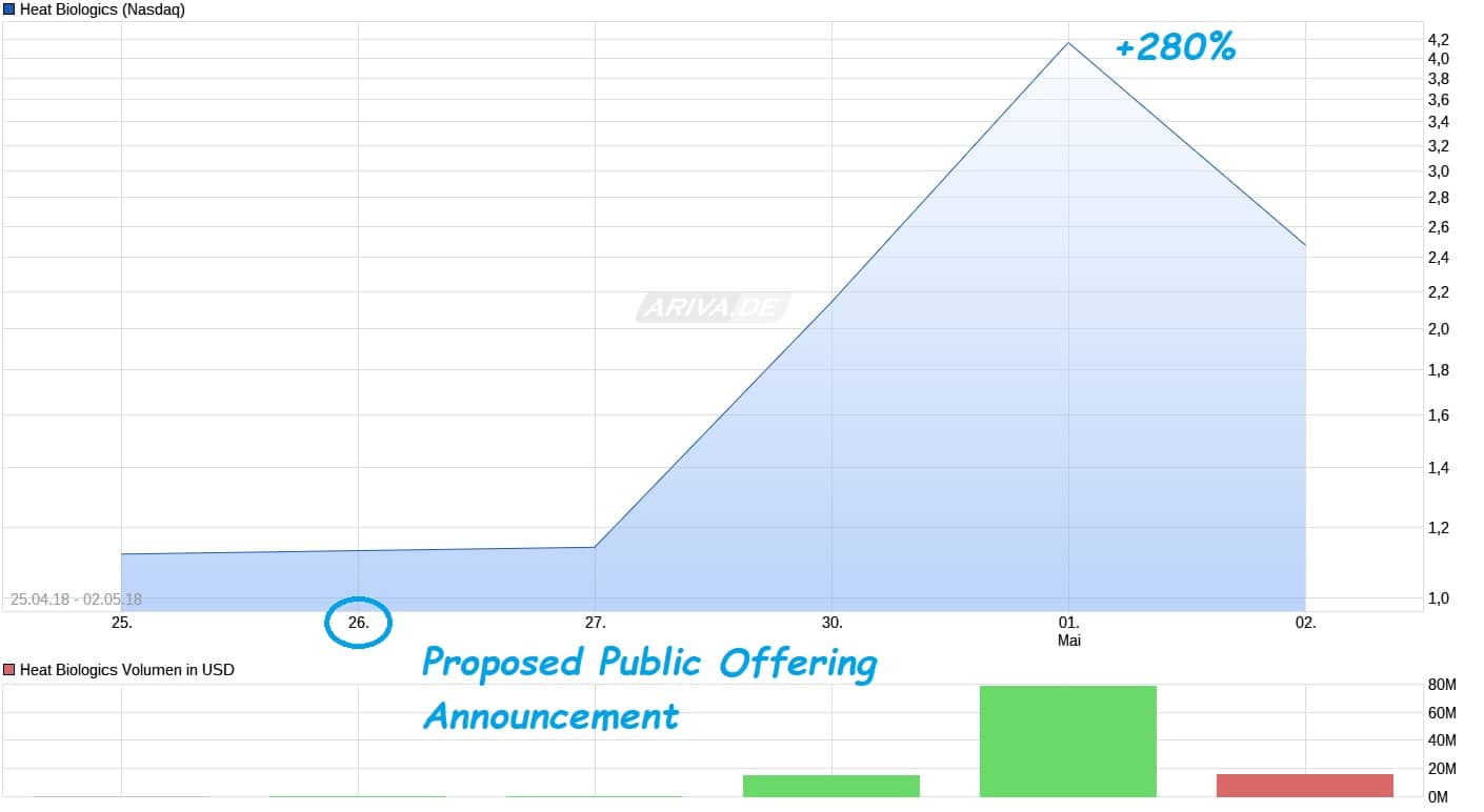 +38% ging es für Heat Biologics (WKN: A2JB4Y) in den letzten Tagen nach unserem erneuten Tipp unter anziehenden Handelsumsätzen nach oben. Gestern gab es nach Börsenschluss die vermeintlich kalte Dusche mit einer angekündigten Kapitalerhöhung. Doch Profis wissen: Das ist ein gutes Zeichen!