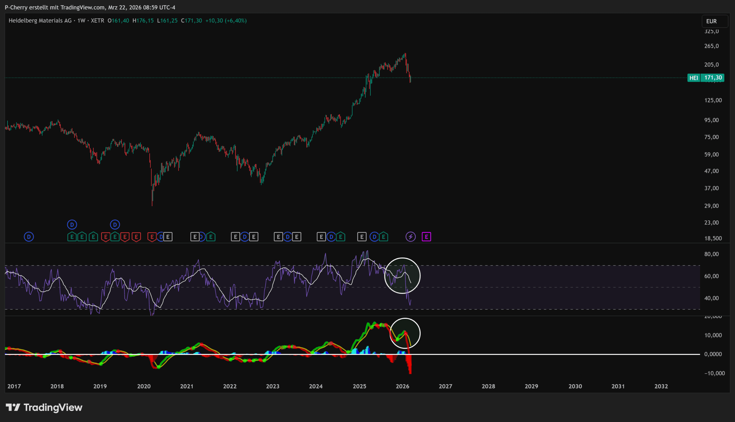 Im Wochenchart steht die Heidelberg Materials-Aktie damit an einem technischen Scheidepunkt zwischen Trendfortsetzung und möglicher Trendabschwächung.