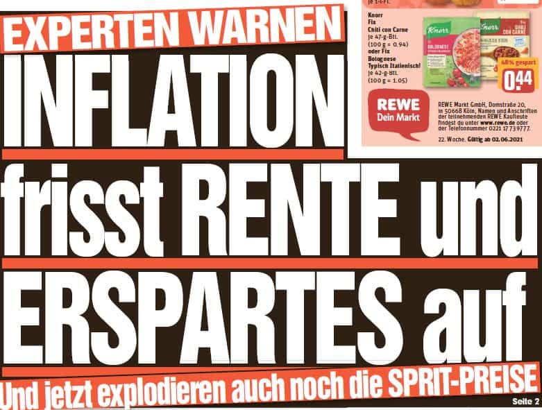 Die BILD-Zeitung nahm diese Inflationsängste zum Anlass für ein Titelbild: