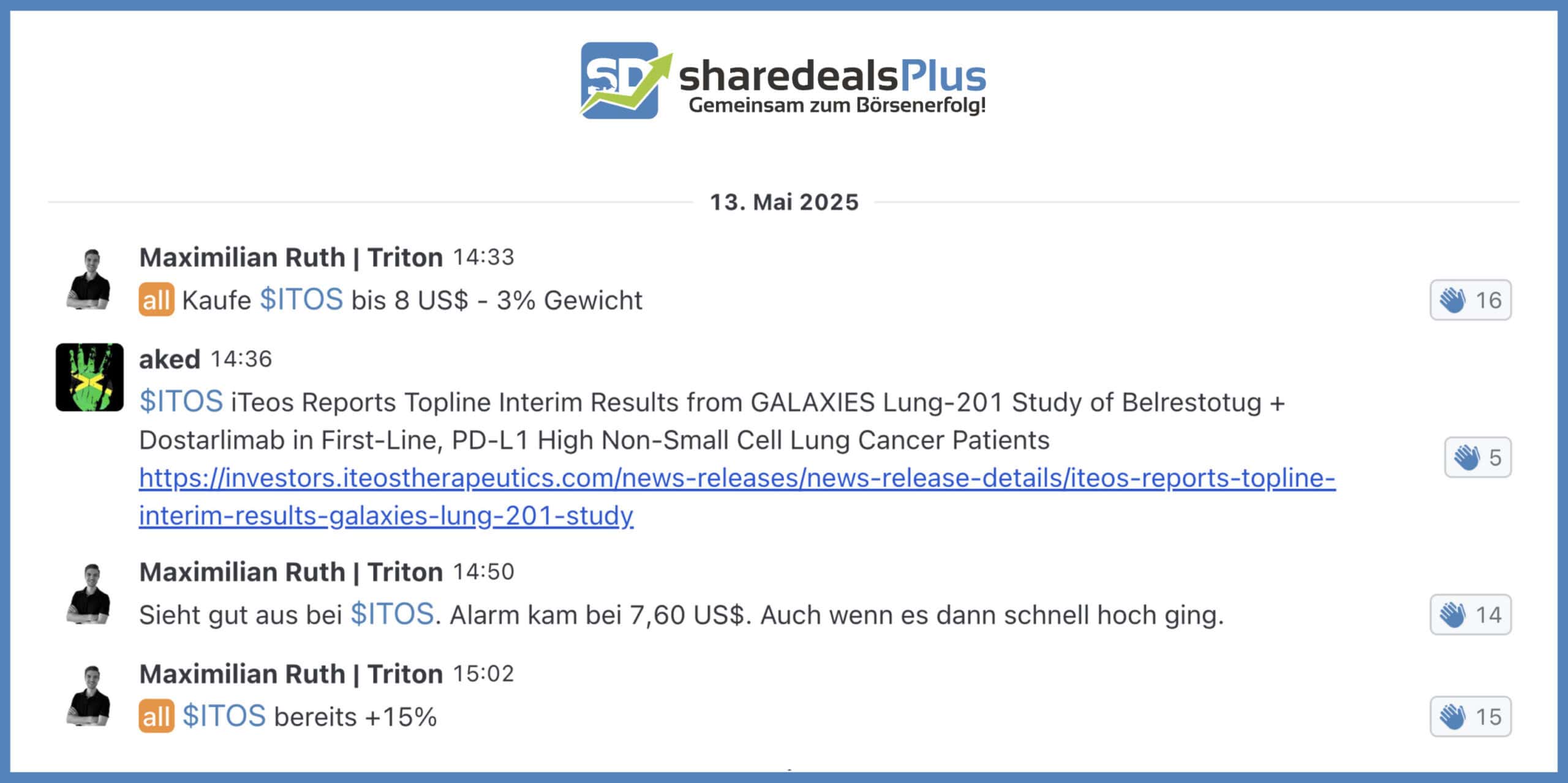 Mit den jüngsten Trading-Ideen in Deutschlands einzigartigen Biotech-Anlegerkreis konnten NBC-Mitglieder ein ums andere Mal binnen kürzester Zeit Prozente einstreichen. Am Mittwoch waren es +53% mit der Quipt-Aktie (hier nachlesen), kurz zuvor gelang ein Coup mit iTeos Therapeutics. Vergangene Woche Dienstag kam vom NBC-Chefanalysten Maximilian Ruth im für Mitglieder exklusiven Live Chat die Ansage, bis 8 US$ bei der iTeos-Aktie einzusteigen mit einem maximalen Depotgewicht von 3% – unmittelbar nach News, die für Laien nach Fehlschlag klingen.