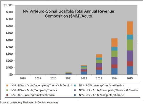 Ladenburg erwartet eine weltweite Kommerzialisierungsstrategie für den Neuro-Spinal Scaffold über Partnerschaften. Interessant ist, dass von einem enormen Marktvolumen außerhalb der USA ausgegangen wird.