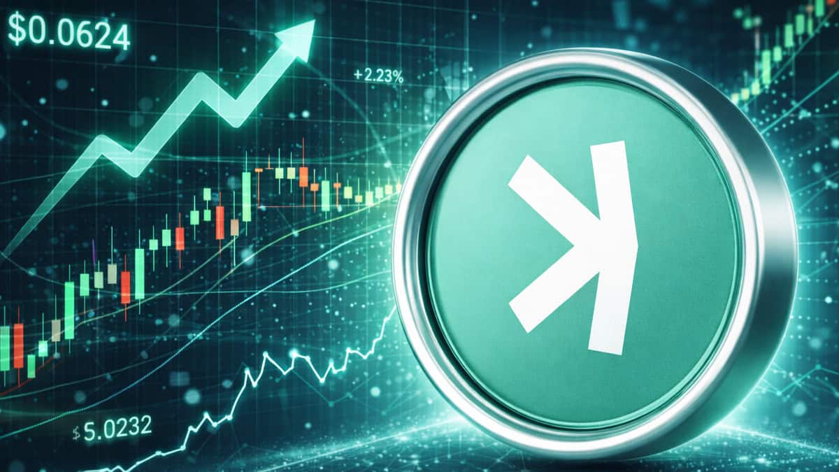 kaspa coin mit Chartlinien und Prozentzahlen