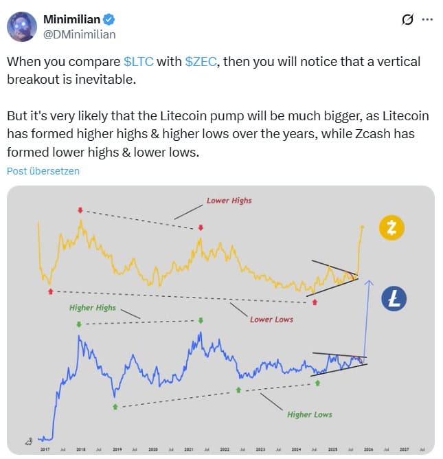 Zcash mit +1.400% in 6 Monaten – wann startet Litecoin?