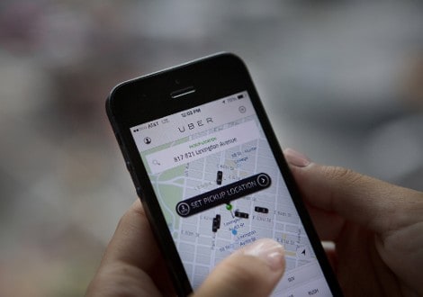 Kunde bei der Nutzung der Uber App auf dem Smartphone...