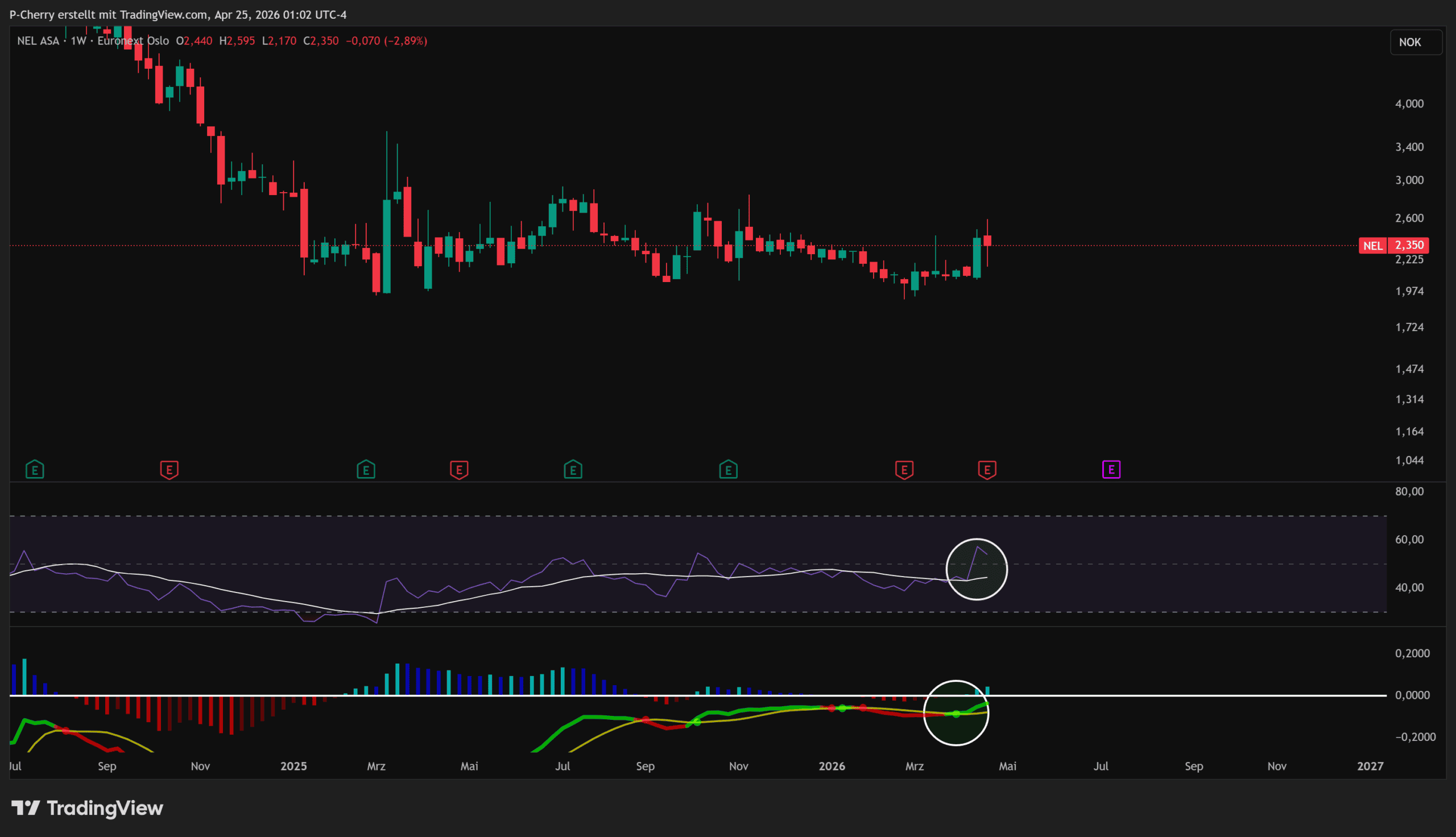 Die Indikatoren liefern derzeit schwache, aber positive Signale. RSI und MACD haben im Wochenchart bullische Crossover gebildet, während das Momentum leicht anzieht. Kurzfristig wirkt die Nel ASA-Aktie damit stabilisiert, bleibt wegen der hohen Schwankungen jedoch anfällig für weitere Rückschläge.