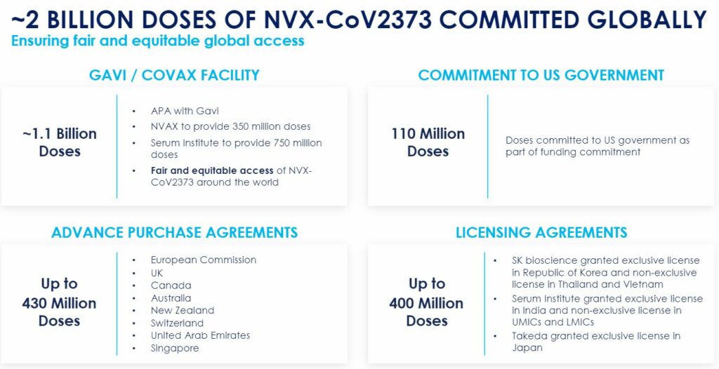 Novavax verfügt über den weltweit verträglichsten und meist-produzierten, proteinbasierten Corona-Impfstoff und kann mittlerweile Zulassungen in zahlreichen Ländern und auch der Europäischen Union verzeichnen. Das Vakzin zeichnet sich durch Verträglichkeit, Skalierbarkeit der Produktion und der Lagerung zu Kühlschranktemperaturen aus. Die Wirksamkeit ist mit hoher Wahrscheinlichkeit nach den beiden mRNA-Stoffen die zuverlässigste.