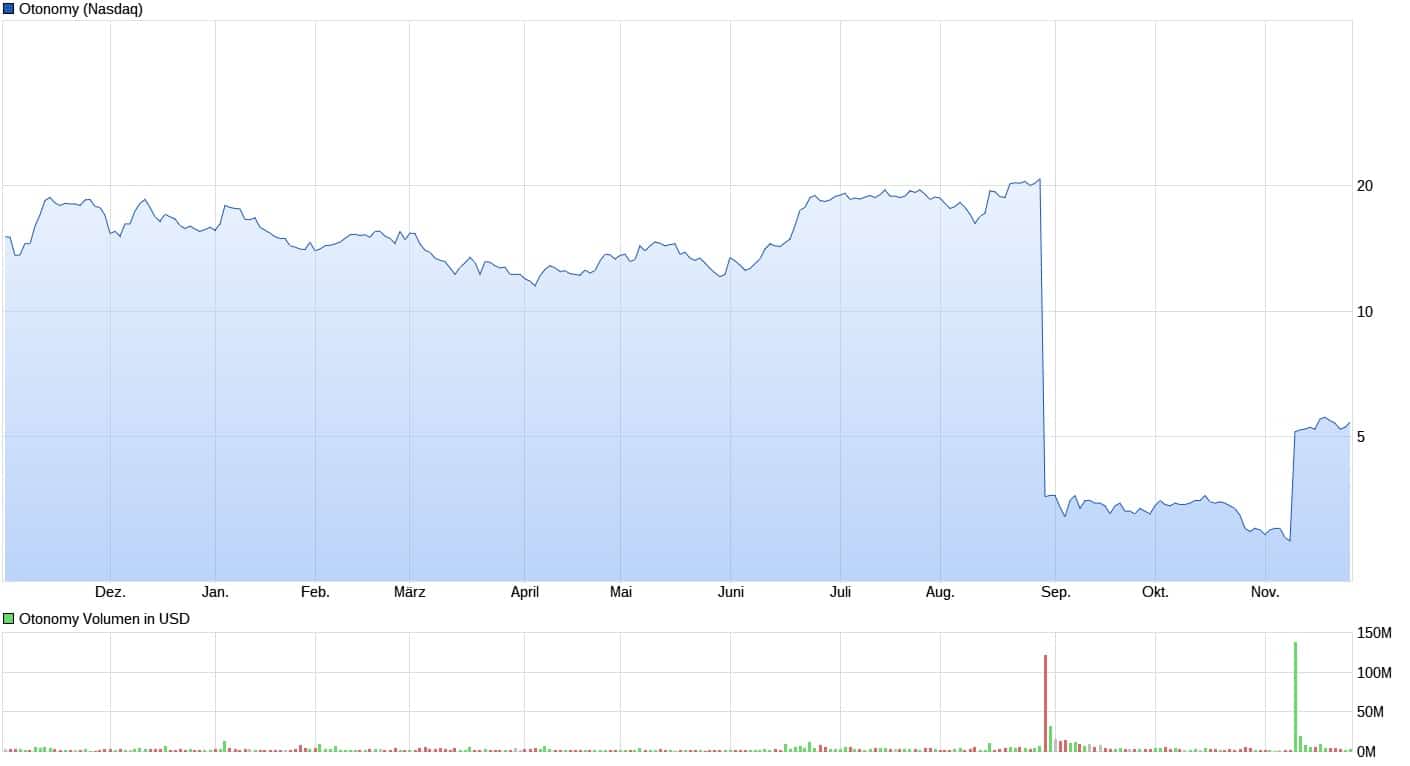Otonomy wird derzeit mit einer Marktkapitalisierung von gut 160 Millionen USD gehandelt. Im August waren es noch über 600 Millionen gewesen. Das schuldenfreie Unternehmen geht davon aus, zum Jahresende noch über rund 120 Millionen USD Liquidität zu verfügen. Darin noch nicht mit einberechnet ist ein möglicher Erlös aus dem OTIPRIO-Verkauf.