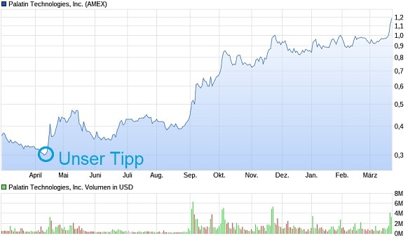 Ein weiterer SD-Volltreffer, der in die Geschichte eingehen wird: Als wir unseren Lesern vor knapp einem Jahr die Aktie von Palatin Technologies (WKN: A1C538) mit "10 guten Gründe, jetzt zu kaufen" präsentierten, notierte das Papier weitgehend unbeachtet bei Tiefstkursen um 0,30 USD. Gestern ging der Wert bereits bei 1,12 USD aus dem Handel.