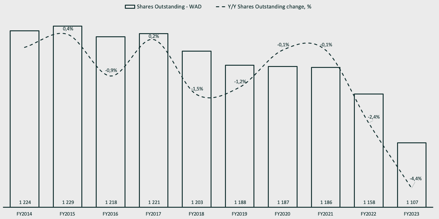 Dank der eifrigen Rückkäufe sinkt die Anzahl der ausstehenden Aktien rasant.