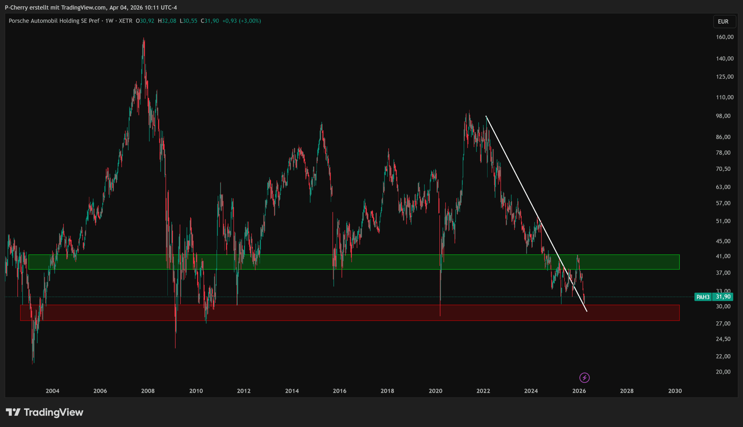 Porsche, Wochenchart, Quelle: Tradingview.com