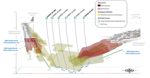 - Anpeilen von BHEM-Platten, die auf eine mögliche mineralisierte Verbindung zwischen den Lagerstätten Selebi North und Selebi Main hinweisen.