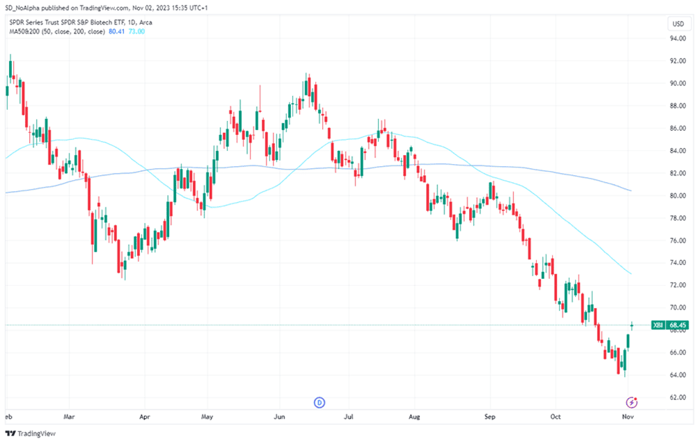 Als der aktuelle Bärenmarkt im breiten S&P 500 begann, befand sich der Biotech-ETF XBI bereits knapp neun Monate im Korrekturmodus und hatte zum Jahresbeginn 2022 schon etwa um 36 % korrigiert. Das schmerzt an sich schon genug, doch da ging noch mehr:
