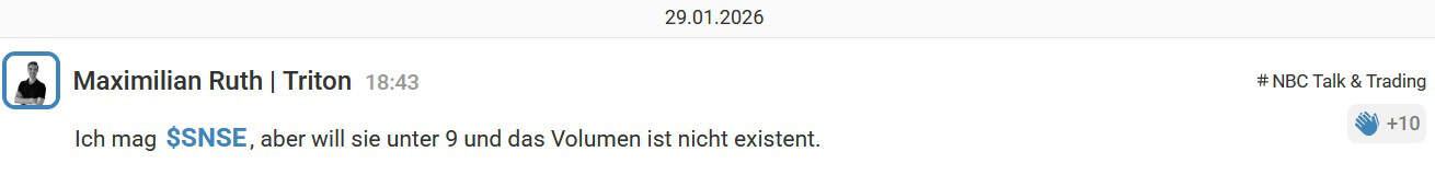 Zum Zeitpunkt von Ruths Ankündigung am 29. Januar handelte die Sensei-Aktie noch nahe 10 US$, doch schon wenige Tage später – ab dem 2. Februar – konnte sie tatsächlich bei erhöhtem Volumen tagelang zu Wunschpreisen und bis zu einem Tiefkurs von 8,37 US$ eingesammelt werden.