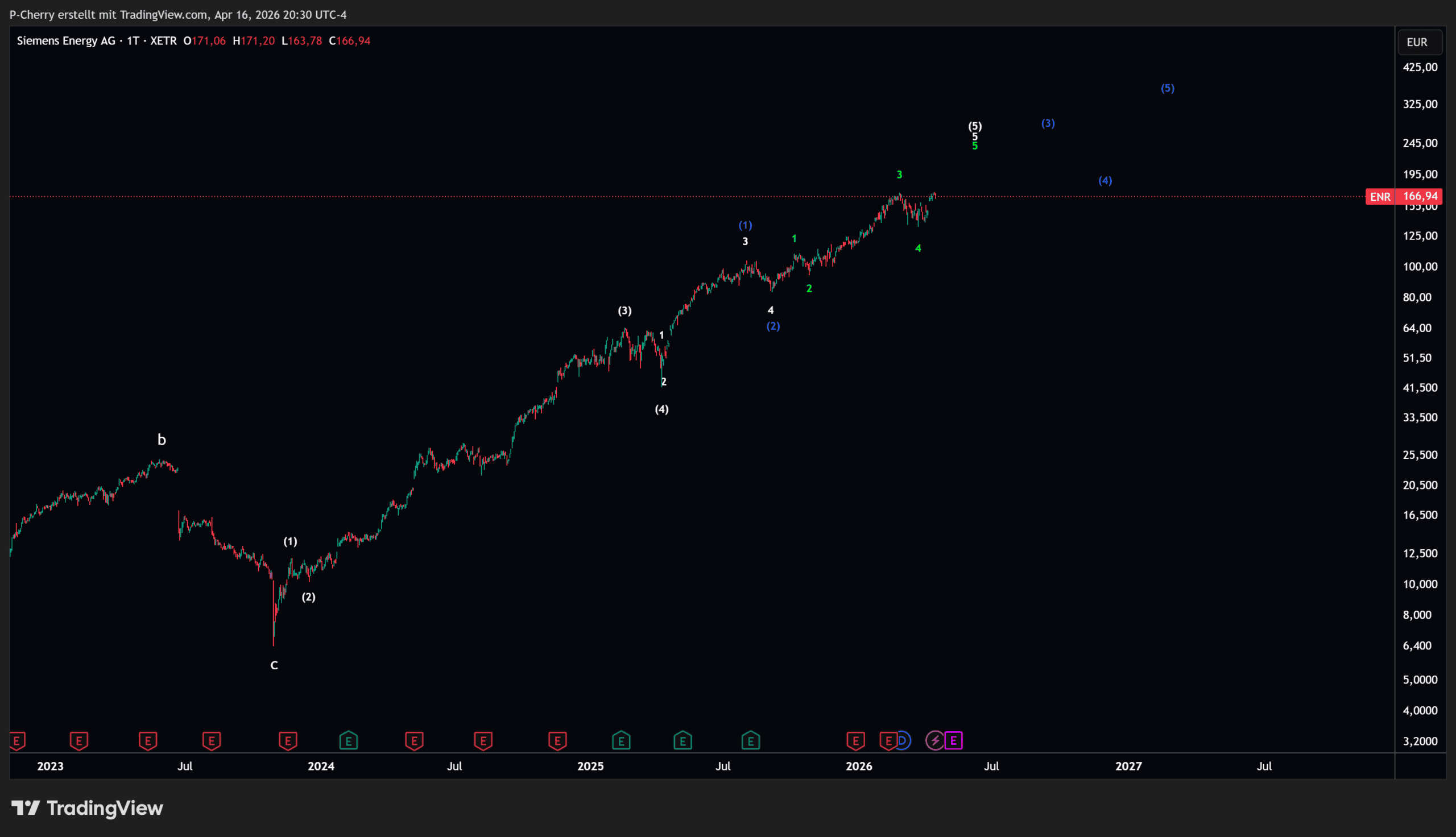 Seit Oktober 2023 ist der Aktienkurs von Siemens Energy um beeindruckende +2.566% gestiegen. Weitere Gewinnmitnahmen wären daher nicht verwunderlich. In der blauen Alternativerwartung – siehe Chartbild, sind auch weitere deutliche Kursanstiege, mit Kursen von über 300 € im Rahmen des Möglichen.