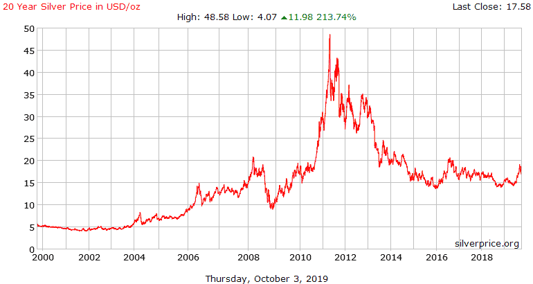 Während die Nachfrage nach Silber für die Fotoindustrie in den letzten drei Dekaden um etwa 70% zurückging, verzehnfachte sich der Silberpreis in der Spitze innerhalb der Zehnjahresspanne ab 2001.