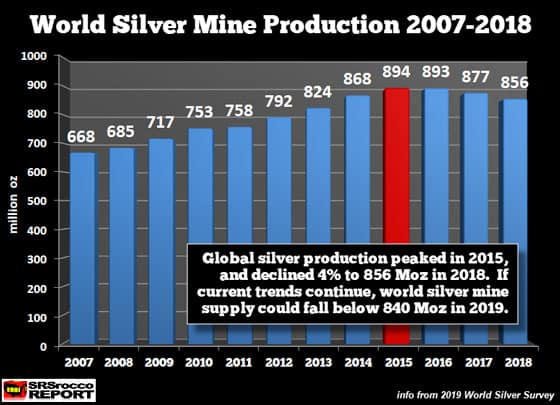 Die weltweite Silberminenproduktion ist seit fünf Jahren tendenziell rückläufig.