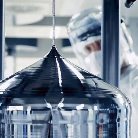 Ein Siltronic-Mitarbeiter überwacht und steuert die Maschinen zur Waferproduktion...