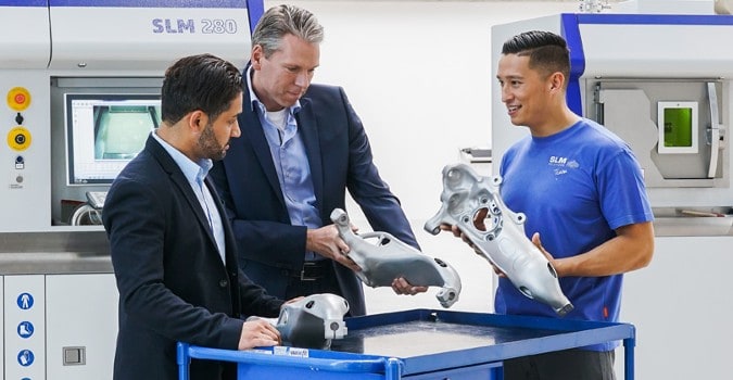 Diskussion von Mitarbeitern der SLM Solutions Group
